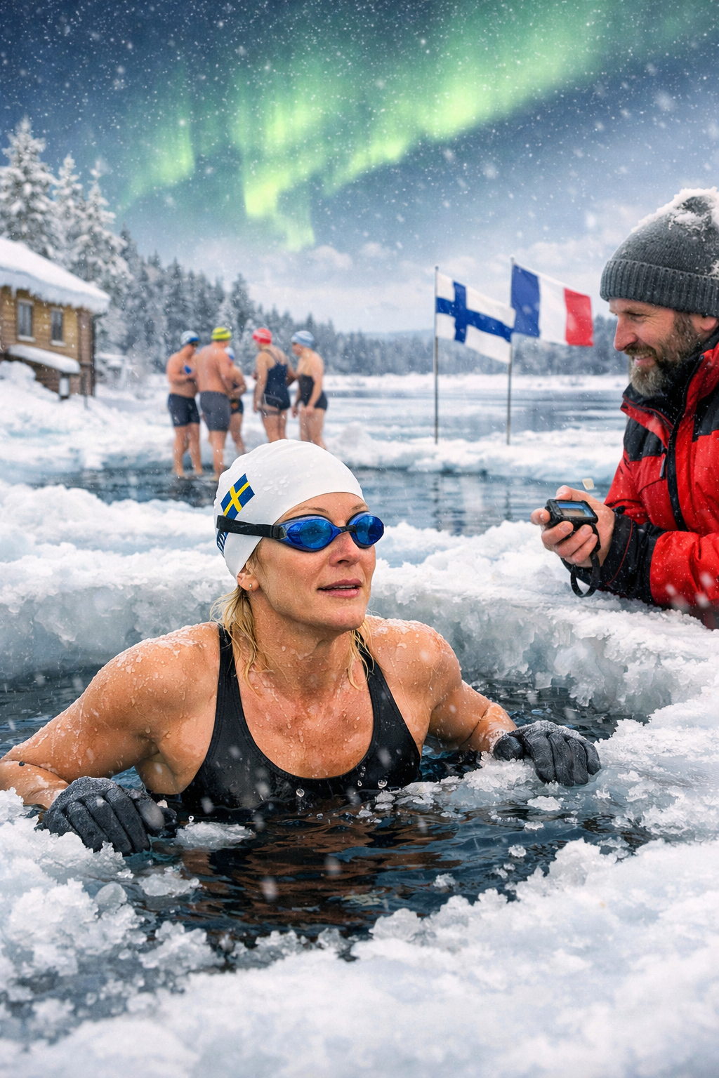 Magdalena Jarvin, connue sous le surnom « Ice Mama », poursuit sa préparation en vue des championnats du monde de natation en eau glacée, organisés en Finlande, dans la ville d’Oulou. Cette discipline extrême se pratique dans des conditions proches du point de congélation, avec une eau dont la température devrait avoisiner 1 °C lors de la compétition.